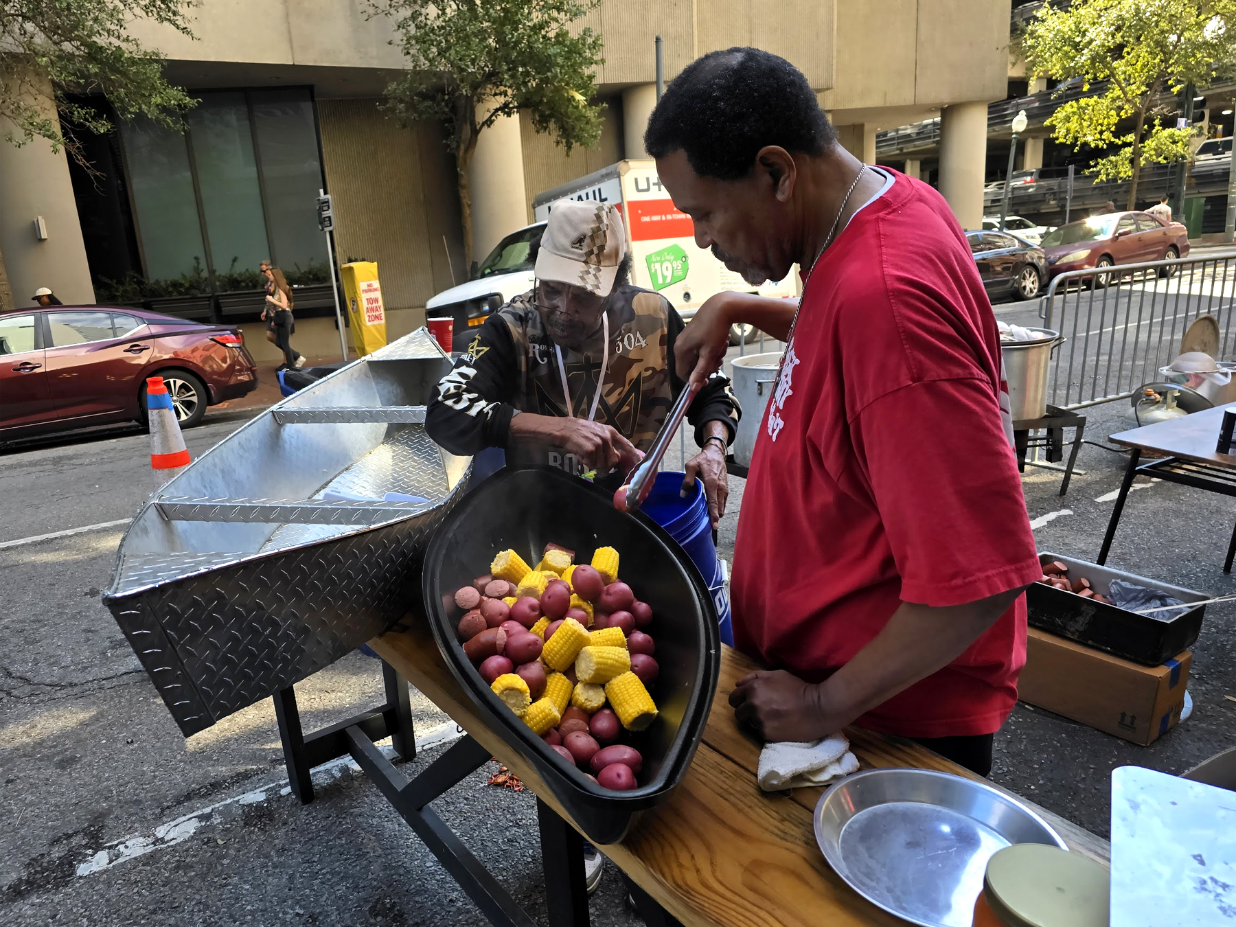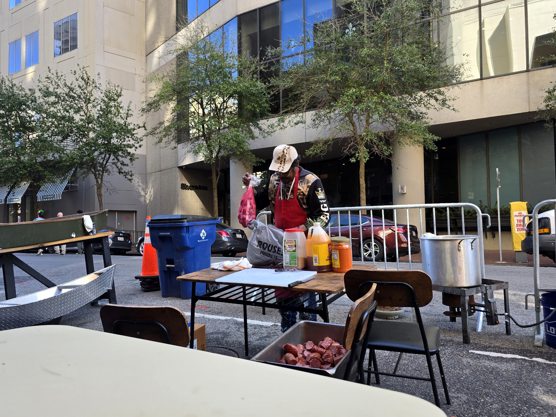 We made our way to the correct side of Canal Street and to Downtown at TaTa’s for a second breakfast. But even better than the breakfast sandwich was talking to Chef Aaron and Chef Joe, while they prepared a crawfish boil for the big day.