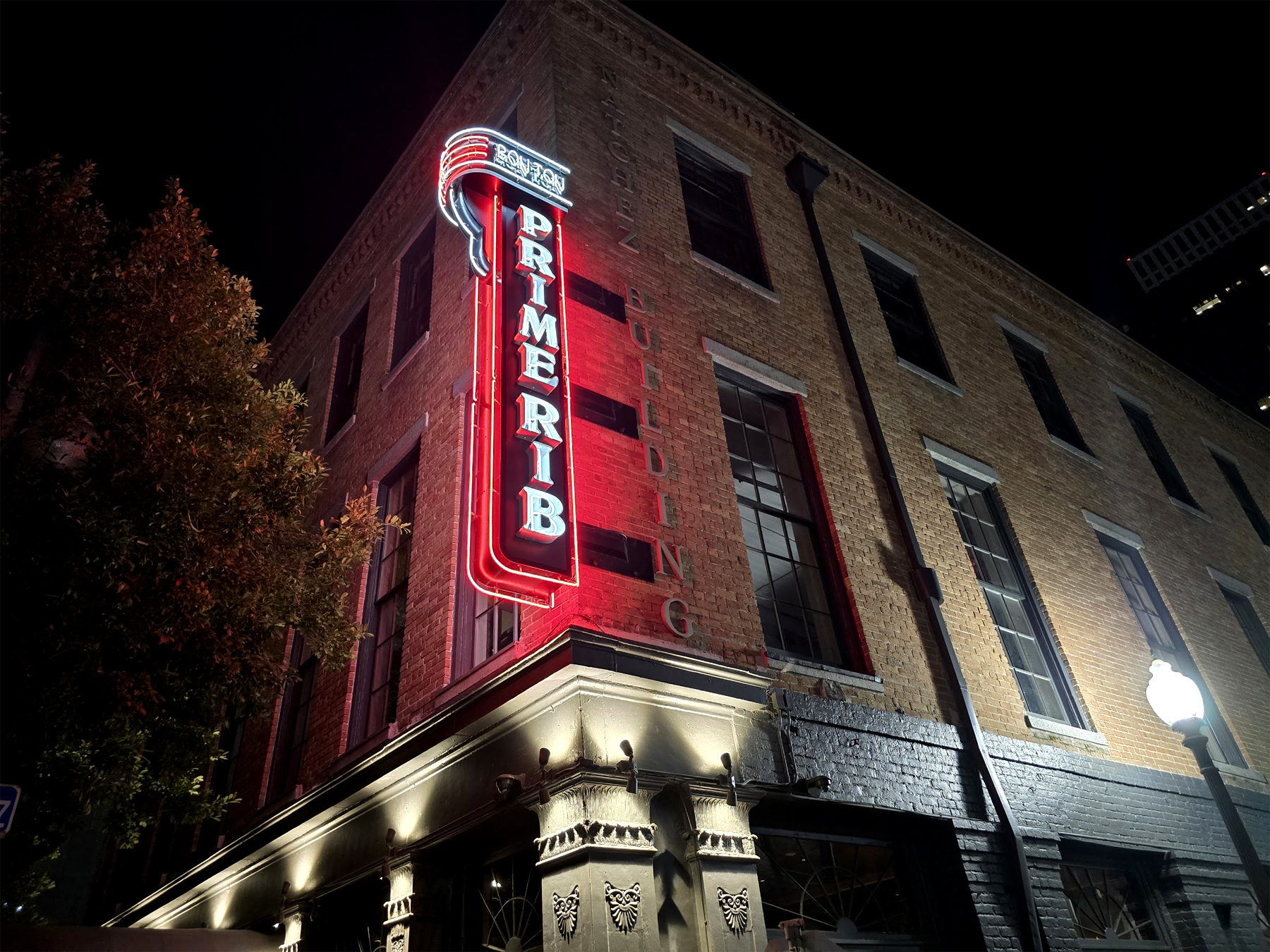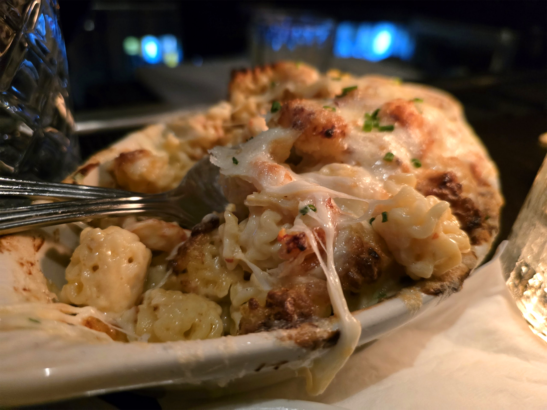 We took our seats and perused the menu over a couple of drinks. We split the Prime Rib, or Prime Prime Rib, as they call it, which is USDA Prime, aged 40 days, and served with horseradish sauce and au jus. We also split a loaded baked potato and the crawfish mac & cheese, finishing with the butter cake & ice cream.