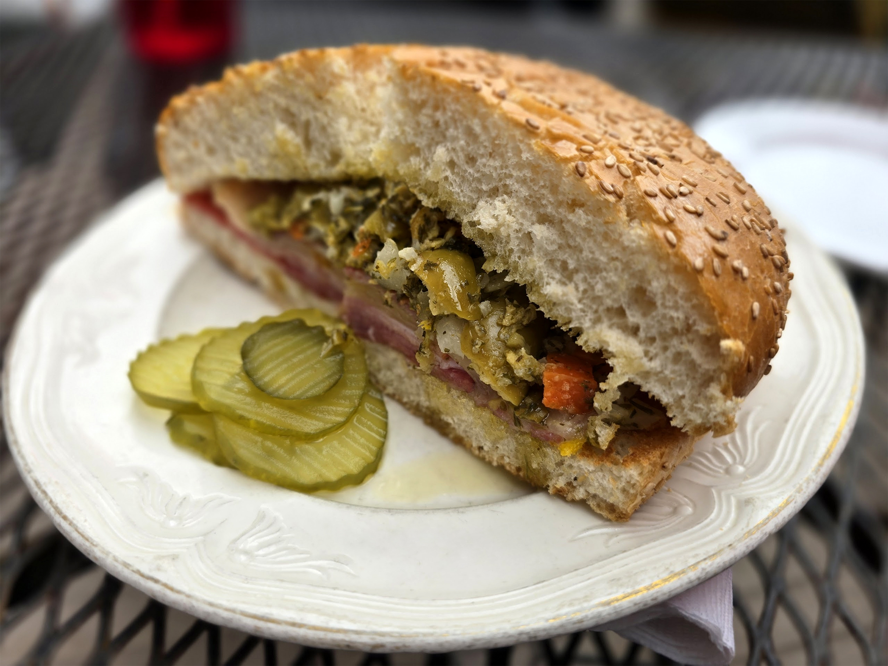 We needed something to temper the Jet Fuel, so we walked across the street to Frank’s and had our first ever muffuletta. This version was heavy on the olive salad and light on the cured meats and cheese, so wasn’t to my taste, but based on other online photos, I think it was a ratio issue and I would like to find a different restaurant and try this famous sandwich again.