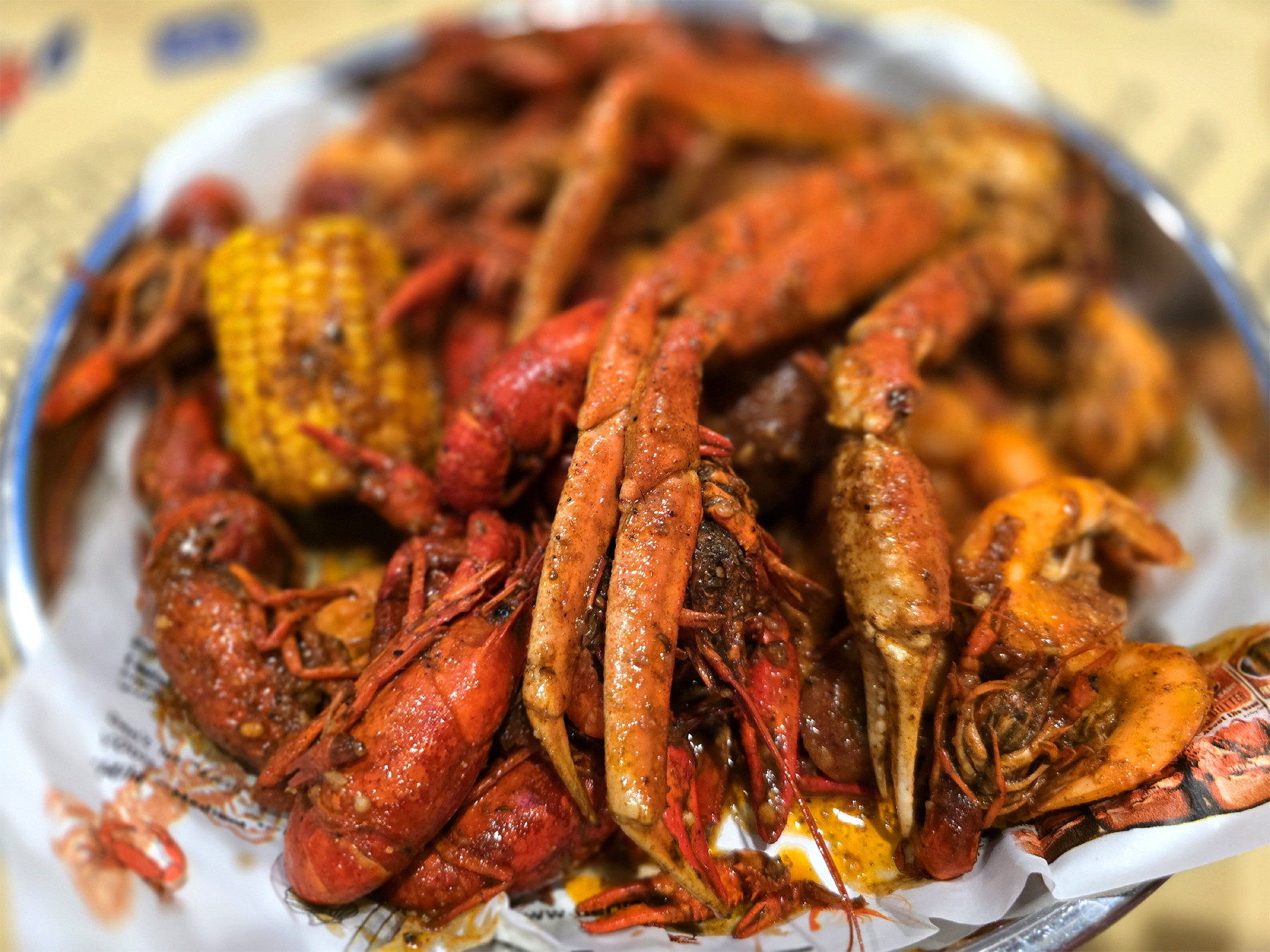 It was an exhausting first day and we didn’t eat properly after breakfast, so we wandered back near our condo and filled-up on a delicious crawfish boil at Fiery Crab.
