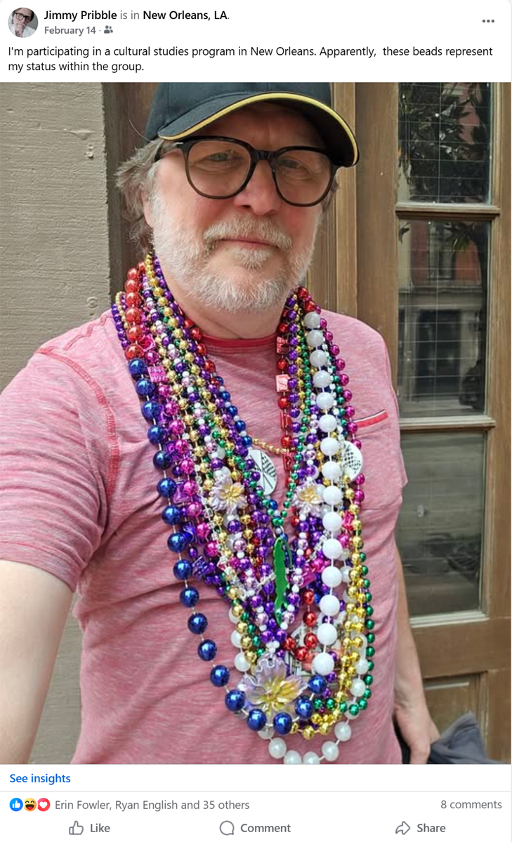 We got into the spirit of the event and participated in the bead collection, but it didn’t take long to realize I didn’t know why I was collecting them. I wore so many that they became cumbersome and annoying. We collected so many overall that we ended-up with two luggage-sized bags full of beads destined for the landfill, which didn’t feel very good. From then on, I toned it down to just a few strands and by Mardi Gras, I was down to wearing just a single necklace of nicer glass beads that I liked.